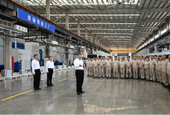 19日下午,习近平首先来到洛阳轴承集团股份有限公司考察。该公司前身为“一五”期间建成的洛阳轴承厂。在智能工厂,习近平了解企业发展历程,听取不同类型轴承产品用途和性能介绍,走近生产线察看生产流程。他对围拢过来的企业职工说,制造业是国民经济的重要支柱,推进中国式现代化必须保持制造业优势合理比重。现代制造业离不开科技赋能,要大力加强技术攻关,走自主创新的发展路子。他勉励职工发扬主人翁精神,在企业发展中奋发有为、多作贡献。