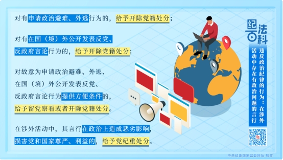 《中国共产党纪律处分条例》第七十二条、第七十三条对涉外活动中存在有政治问题的言行行为列出负面清单,作出处分规定。