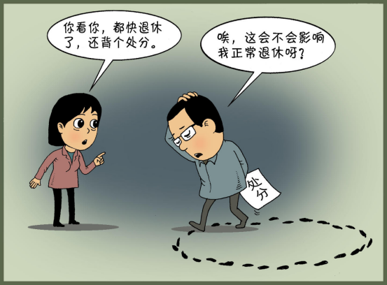 问:刘主任,财务室老张一个月前受到党内警告处分,他即将退休,可以办理退休手续吗?